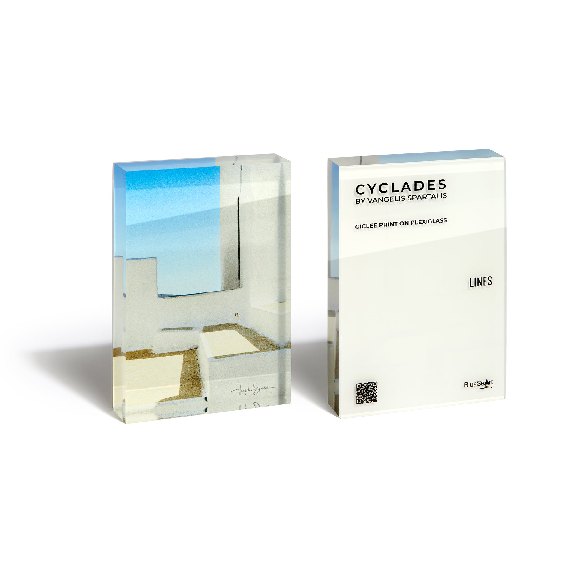 The unparalleled beauty of the “Lines” in the architecture of houses on a Greek island. The clean and geometric lines of the buildings are showcased in the most refined manner, reflecting the traditional architecture of the place. The Aegean blue of the sky provides a stunning backdrop, offering an unparalleled setting to the substantial architecture of these constructions. The use of Cycladic white highlights the harmony and simplicity, creating an atmospheric and enchanting combination.
